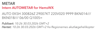 Fra disse produseres det AUTOMETAR hver halvtime. Disse leverer data direkte til HemsWX.