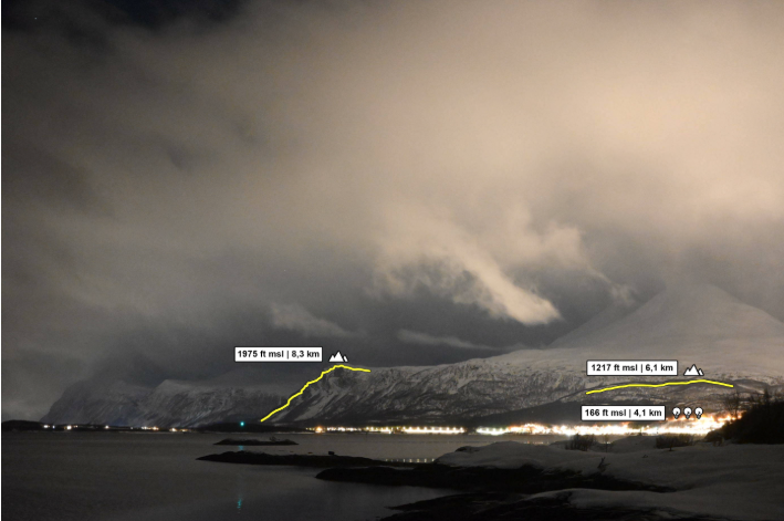 Til disse er det også målt opp avtand og høyder til relevante referansepunkter i horisonten.