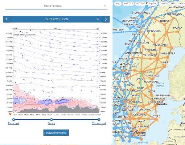 NLA routes | Danske routes | IGA routes | Offshore routes | Icing